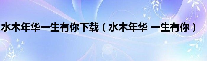 关于水木年华一生有你下载,水木年华 一生有你这个很多人还不知道,今天菲菲来为大家解答以上的问题,现在让我们一起来看看吧!