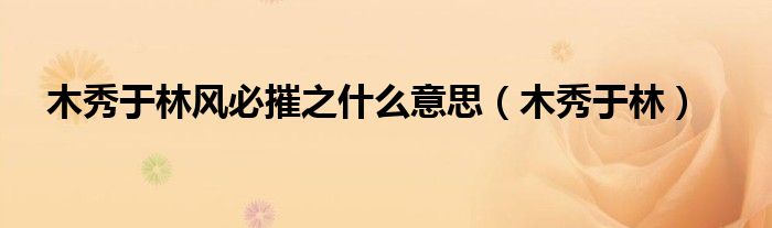 关于木秀于林风必摧之什么意思,木秀于林这个很多人还不知道,今天菲菲来为大家解答以上的问题,现在让我们一起来看看吧!