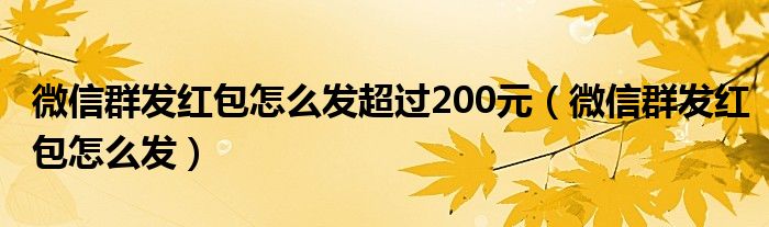 微信群发红包怎么发超过200元(微信群发红包怎么发)