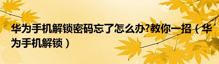华为手机解锁密码忘了怎么办?教你一招(华为手机解锁)