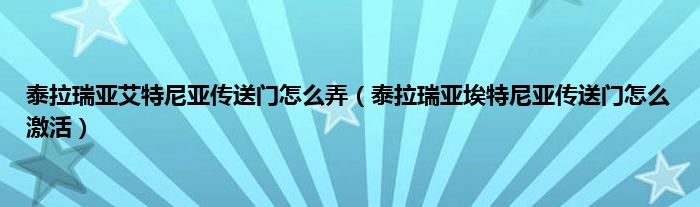 泰拉瑞亚艾特尼亚传送门怎么弄(泰拉瑞亚埃特尼亚传送门怎么激活)