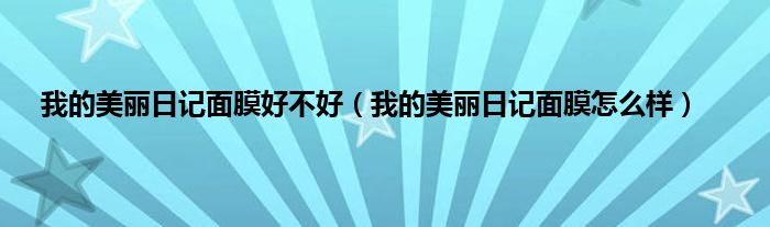 大家好,综合小编来为大家讲解下我的美丽日记面膜好不好,我的美丽日记面膜怎么样这个很多人还不知道,现在让我们一起来看看吧!