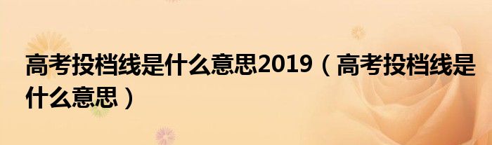 大家好,小晋来为大家解答以下问题,关于高考投档线是什么意思2019,高考投档线是什么意思很多人还不知道,今天让我们一起来看看吧!