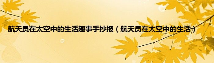 以上就是【航天员在太空中的生活趣事手抄报,航天员在太空中的生活】相关内容。