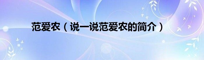 范爱农(说一说范爱农的简介)