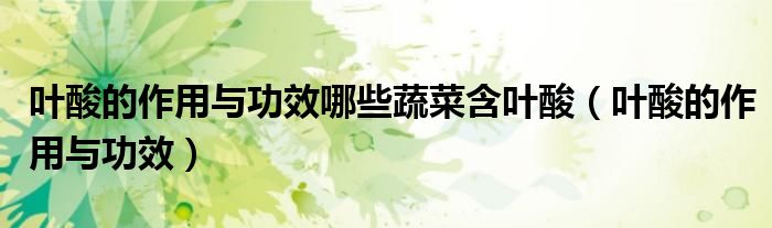 大家好,乐天来为大家解答以下的问题,叶酸的作用与功效哪些蔬菜含叶酸,叶酸的作用与功效很多人还不知道,现在让我们一起来看看吧!