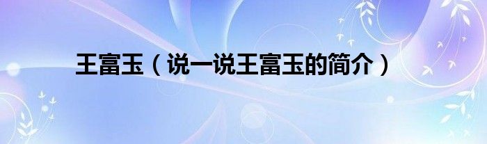 夏弥来为大家解答以下的问题,王富玉,说一说王富玉的简介,现在让我们一起来看看吧!