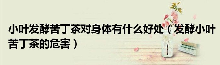 大家好,小晋来为大家解答以下问题,关于小叶发酵苦丁茶对身体有什么好处,发酵小叶苦丁茶的危害很多人还不知道,今天让我们一起来看看吧!