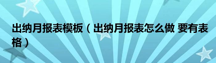 关于出纳月报表模板,出纳月报表怎么做 要有表格这个很多人还不知道,今天菲菲来为大家解答以上的问题,现在让我们一起来看看吧!