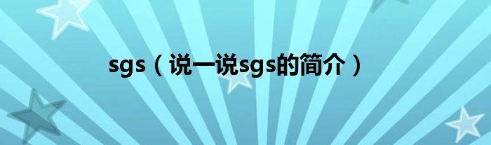 夏弥来为大家解答以下的问题,sgs,说一说sgs的简介,现在让我们一起来看看吧!