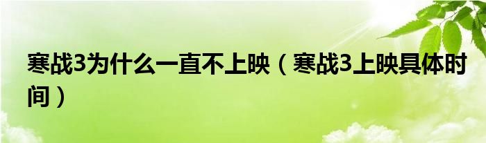关于寒战3为什么一直不上映,寒战3上映具体时间这个很多人还不知道,今天菲菲来为大家解答以上的问题,现在让我们一起来看看吧!