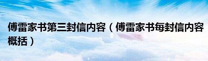 关于傅雷家书第三封信内容,傅雷家书每封信内容概括这个很多人还不知道,今天菲菲来为大家解答以上的问题,现在让我们一起来看看吧!