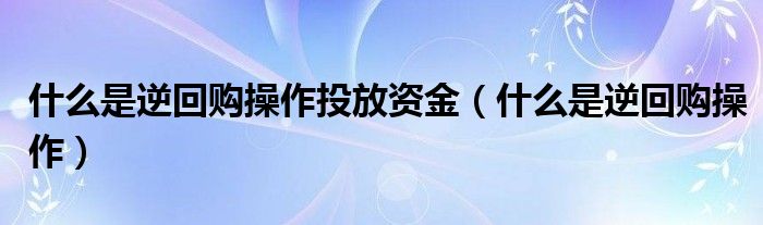 关于什么是逆回购操作投放资金,什么是逆回购操作这个很多人还不知道,今天菲菲来为大家解答以上的问题,现在让我们一起来看看吧!