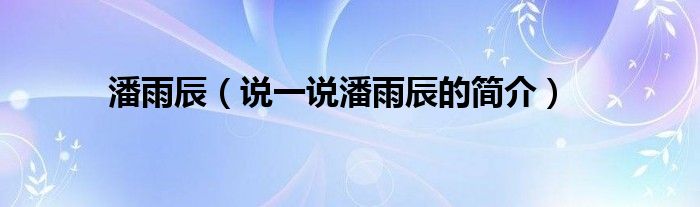夏弥来为大家解答以下的问题,潘雨辰,说一说潘雨辰的简介,现在让我们一起来看看吧!