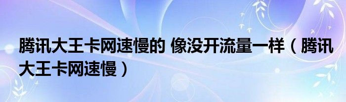 腾讯大王卡网速慢的 像没开流量一样(腾讯大王卡网速慢)