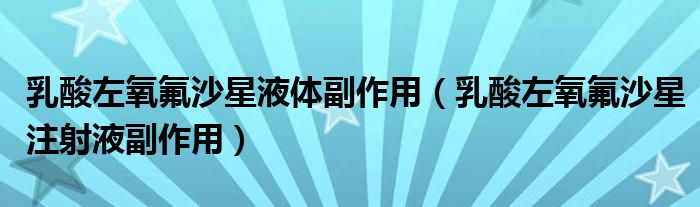 大家好,乐天来为大家解答以下的问题,乳酸左氧氟沙星液体副作用,乳酸左氧氟沙星注射液副作用很多人还不知道,现在让我们一起来看看吧!