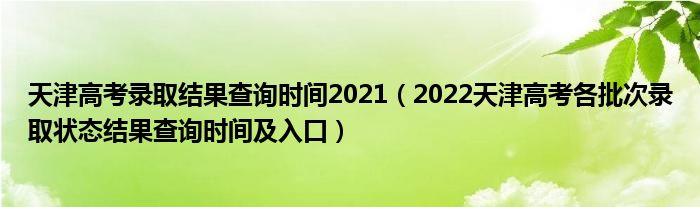 大家好,乐儿来为大家解答以下问题,天津高考录取结果查询时间2021,2022天津高考各批次录取状态结果查询时间及入口很多人还不知道,现在让我们一起来看看吧!