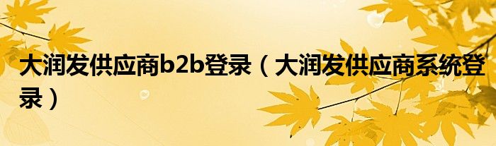 关于大润发供应商b2b登录,大润发供应商系统登录这个很多人还不知道,今天菲菲来为大家解答以上的问题,现在让我们一起来看看吧!
