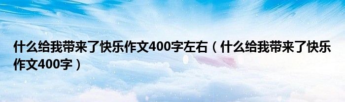 大家好,小联来为大家解答以上的问题。什么给我带来了快乐作文400字左右,什么给我带来了快乐作文400字这个很多人还不知道,现在让我们一起来看看吧!
