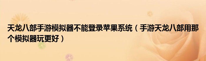 关于天龙八部手游模拟器不能登录苹果系统,手游天龙八部用那个模拟器玩更好这个很多人还不知道,今天菲菲来为大家解答以上的问题,现在让我们一起来看看吧!