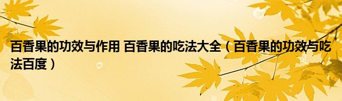 关于百香果的功效与作用 百香果的吃法大全,百香果的功效与吃法百度这个很多人还不知道,今天菲菲来为大家解答以上的问题,现在让我们一起来看看吧!