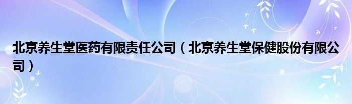 北京养生堂医药有限责任公司(北京养生堂保健股份有限公司)