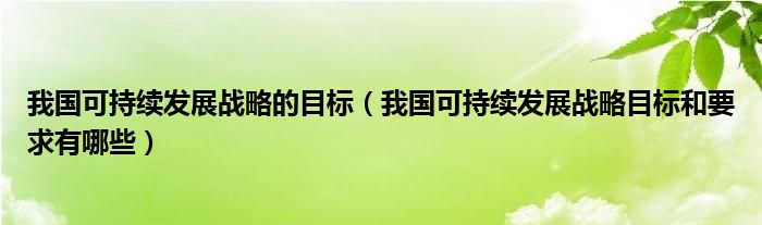 我国可持续发展战略的目标(我国可持续发展战略目标和要求有哪些)