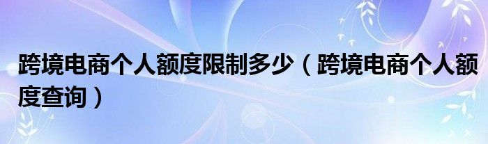 关于跨境电商个人额度限制多少,跨境电商个人额度查询这个很多人还不知道,今天菲菲来为大家解答以上的问题,现在让我们一起来看看吧!