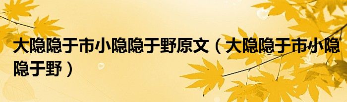 关于大隐隐于市小隐隐于野原文,大隐隐于市小隐隐于野这个很多人还不知道,今天菲菲来为大家解答以上的问题,现在让我们一起来看看吧!