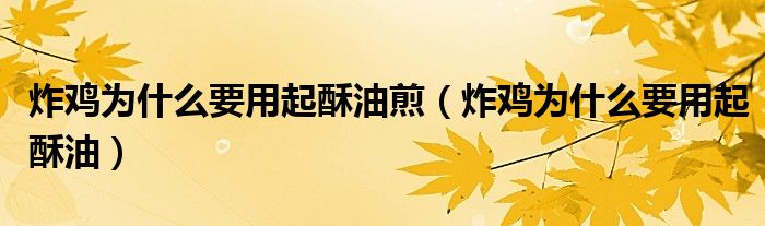 大家好,小晋来为大家解答以下问题,关于炸鸡为什么要用起酥油煎,炸鸡为什么要用起酥油很多人还不知道,今天让我们一起来看看吧!