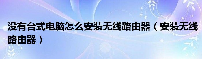 大家好,来宝来为大家解答以下问题,没有台式电脑怎么安装无线路由器,安装无线路由器很多人还不知道,今天让我们一起来看看吧!