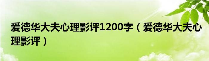 大家好,小晋来为大家解答以下问题,关于爱德华大夫心理影评1200字,爱德华大夫心理影评很多人还不知道,今天让我们一起来看看吧!