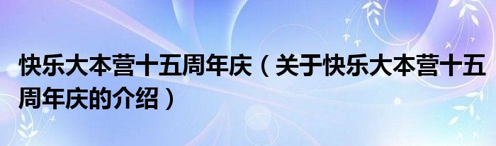 大家好,小虎来为大家解答以上的问题。快乐大本营十五周年庆,关于快乐大本营十五周年庆的介绍很多人还不知道,现在让我们一起来看看吧!