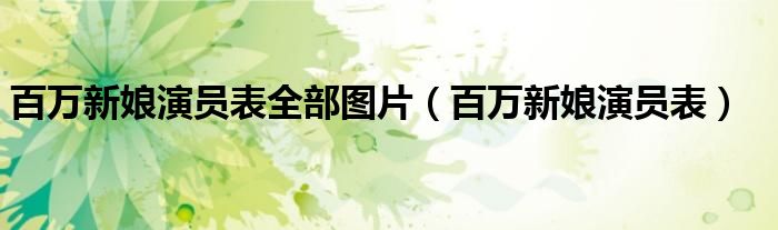 大家好,我是小科,我来为大家解答以上问题。百万新娘演员表全部图片,百万新娘演员表很多人还不知道,现在让我们一起来看看吧!
