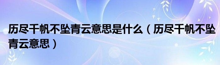 大家好,小华来为大家解答以上的问题。历尽千帆不坠青云意思是什么,历尽千帆不坠青云意思这个很多人还不知道,现在让我们一起来看看吧!