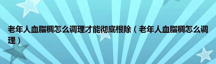 老年人血脂稠怎么调理才能彻底根除(老年人血脂稠怎么调理)
