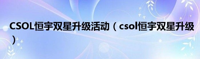 CSOL恒宇双星升级活动(csol恒宇双星升级)