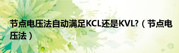 大家好,我是小科,我来为大家解答以上问题。节点电压法自动满足KCL还是KVL?,节点电压法很多人还不知道,现在让我们一起来看看吧!
