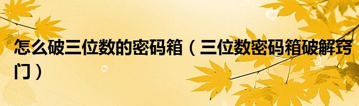 大家好,小晋来为大家解答以下问题,关于怎么破三位数的密码箱,三位数密码箱破解窍门很多人还不知道,今天让我们一起来看看吧!