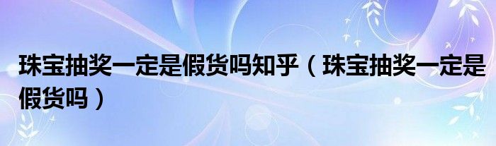 大家好,小晋来为大家解答以下问题,关于珠宝抽奖一定是假货吗知乎,珠宝抽奖一定是假货吗很多人还不知道,今天让我们一起来看看吧!