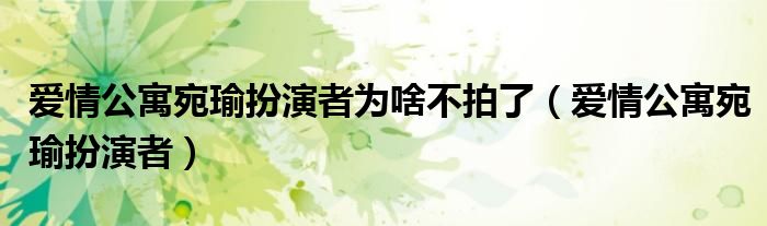 大家好,我是小科,我来为大家解答以上问题。爱情公寓宛瑜扮演者为啥不拍了,爱情公寓宛瑜扮演者很多人还不知道,现在让我们一起来看看吧!