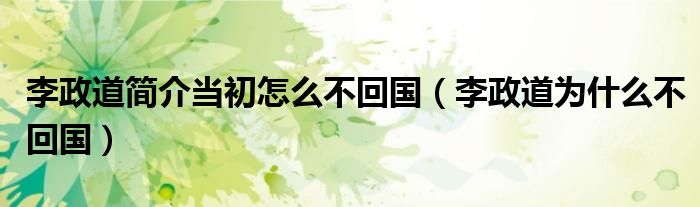 关于李政道简介当初怎么不回国,李政道为什么不回国这个很多人还不知道,今天菲菲来为大家解答以上的问题,现在让我们一起来看看吧!