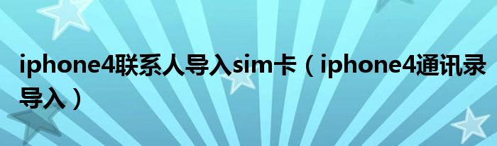 今天小饼为大家解答以下问题,关于iphone4联系人导入sim卡,iphone4通讯录导入很多人还不知道,现在让我们一起来看看吧!