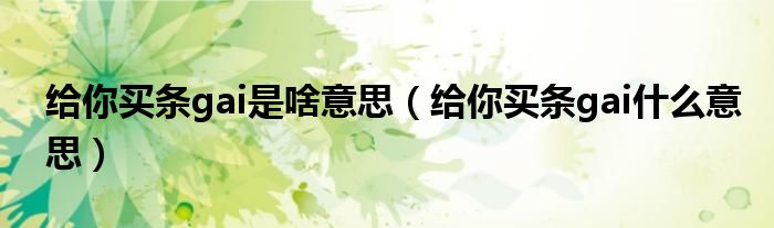 大家好,小晋来为大家解答以下问题,关于给你买条gai是啥意思,给你买条gai什么意思很多人还不知道,今天让我们一起来看看吧!