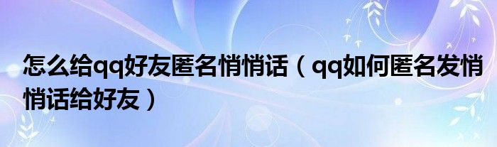 怎么给qq好友匿名悄悄话(qq如何匿名发悄悄话给好友)