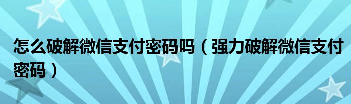 怎么破解微信支付密码吗(强力破解微信支付密码)