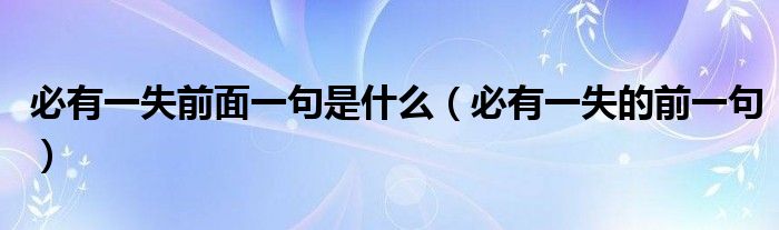 大家好,小晋来为大家解答以下问题,关于必有一失前面一句是什么,必有一失的前一句很多人还不知道,今天让我们一起来看看吧!