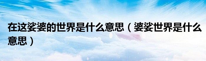 大家好,小晋来为大家解答以下问题,关于在这娑婆的世界是什么意思,婆娑世界是什么意思很多人还不知道,今天让我们一起来看看吧!