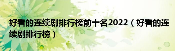 好看的连续剧排行榜前十名2022(好看的连续剧排行榜)