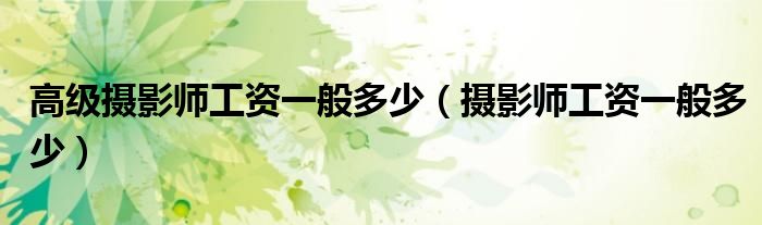 大家好,小晋来为大家解答以下问题,关于高级摄影师工资一般多少,摄影师工资一般多少很多人还不知道,今天让我们一起来看看吧!